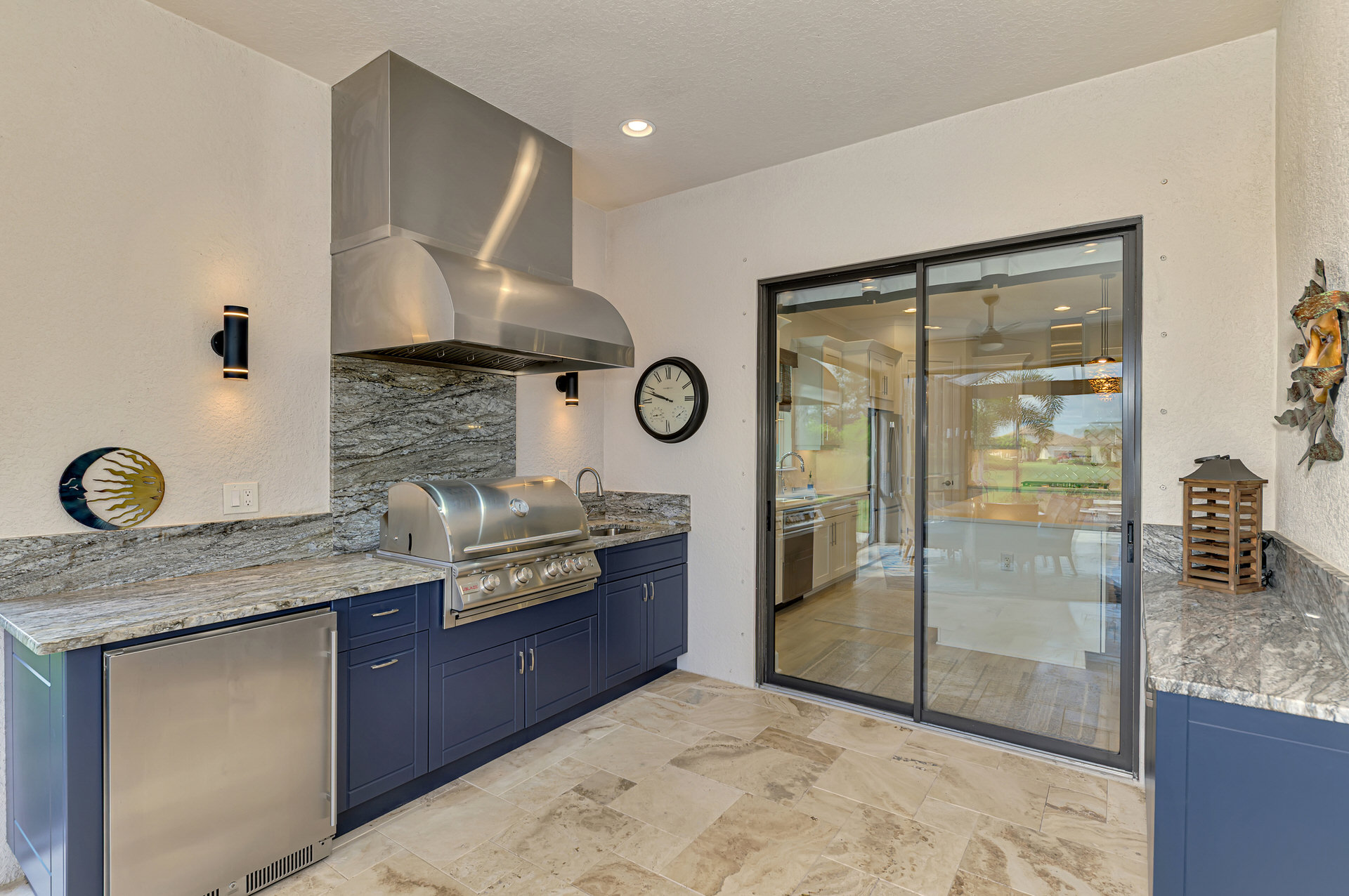 Step outside and discover an expansive lanai built for year-round enjoyment. Features include travertine flooring, wide-screen enclosure, a full outdoor kitchen with grill, refrigerator, sink, and vent hood, plus a cozy fire pit. The oversized heated cocktail spa—nearly the size of a small pool—is perfect for relaxation, while the covered seating area provides the ideal spot for watching sports or sipping your favorite beverage.