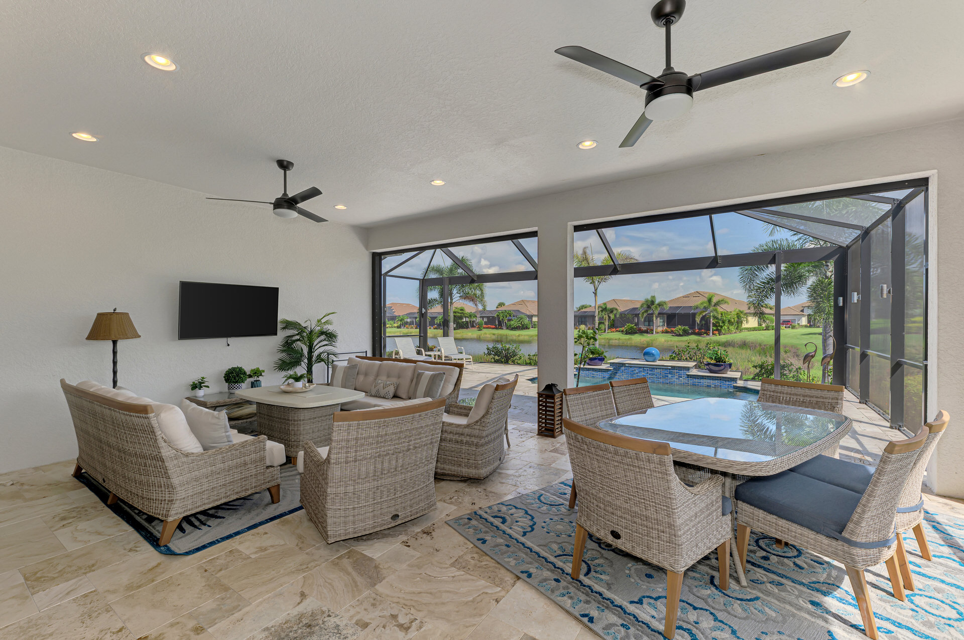 The primary suite offers a tranquil escape with a bay-window sitting area overlooking the lake and lanai. A custom-designed walk-in closet ensures both style and functionality.