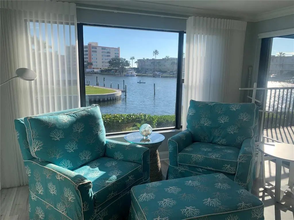 Gorgeous waterfront condo at The Moorings! You will love the view and the comforts of this well decorated condo in a coastal theme with a stunning view of Blind Pass Intercoastal and a partial view of the Gulf of Mexico just beyond. This community consists of just 17 condos and is on the quieter southern end of Siesta Key. Enjoy your private boat slip or just fish off the dock. Primary bedroom has customized storage and closet area and features a king-sized bed. Beautiful ensuite bathroom is remodeled and updated, as is the guest bath. This space also opens up to the screened in 12 x 10 balcony overlooking the water where there are usually kayakers and paddleboarders. The second bedroom has a queen and a twin bed. You will love the kitchen and eating your meals from bar area where you can view out your large living room window with electric shades. For your convenience, The Siesta Key Trolley, which is a constant running free "hop on" and "hop off" way to get to other areas on the Key, that stops right in from on Midnight Pass Rd. Repeat guest cannot return and this beautiful vacation property just opened up.