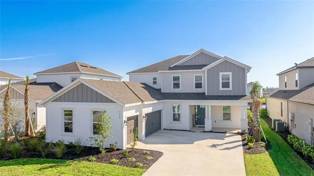 One or more photo(s) has been virtually staged. Welcome to the magnificent, BRAND-NEW Sand Key Model, recently completed this month in the prestigious Skye Ranch community! Boasting nearly 4,000 square feet of sophisticated living, this LAKEFRONT home offers 5 bedrooms, 4.5 baths, a private office, a versatile bonus room, and a spacious 3-car side entry garage. Why wait to build when you can enjoy this brand new home today!