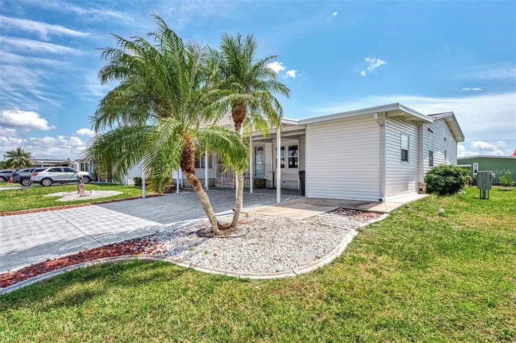 Come see this beautiful 3 bedroom 2 bathroom mobile home in the highly desirable 55+ community of Harbor Isles! Upon entering the unit you will fall in love with it's large open floor plan, you will have just over 1400 sqft with an additional 100 sqft of tiled living space in the under air lanai! The beautiful kitchen with granite has an eat in area in addition to the open dining area. The primary bedroom features an ensuite bathroom and 2 closets! This split floor plan has the 2 additional bedrooms on the opposite side of the home along with the guest bathroom! Laundry is inside the unit!! This home is close to the gulf beaches, Wellen Park, Braves and Rays Spring Training, Shopping, Restaurants, and so much more! Schedule your showing today! NEWER ROOF (SEPT 2022)