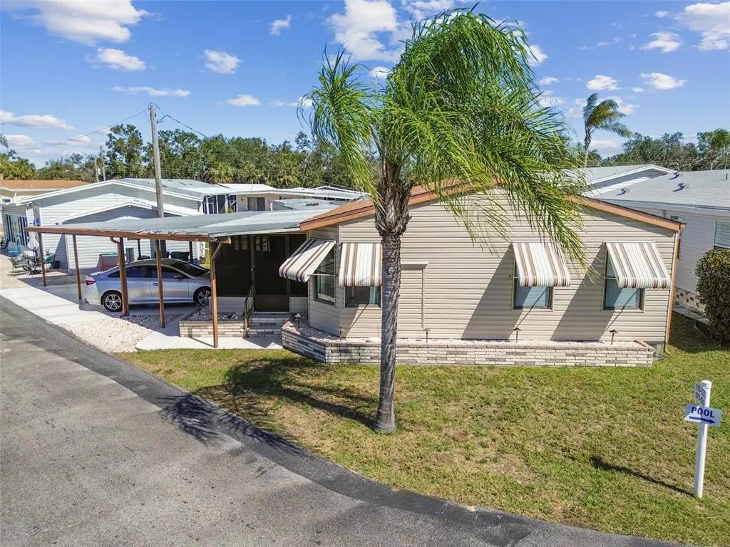 Discover comfortable living in this delightful mobile home nestled within Southwinds 55+ mobile home community, just minutes from Siesta Key! This two-bedroom, two-bathroom home features a thoughtfully designed layout that fills the living spaces with natural light. The kitchen, complete with appliances, seamlessly connects to the living area and features a bar area perfect for entertaining. The practical layout extends to the exterior, where a large screened in patio awaits for enjoying fresh air and outdoor moments. The home also includes convenient outdoor storage with a washer and dryer. This home offers comfort and convenience in a well sought after and welcoming neighborhood. The Southwinds community includes a community pool, shuffleboard, pickleball, bocce ball, and horseshoe courts, a putting green, picnic area, pool room, library, and a recreation hall. Book your tour today to experience all that this wonderful community has to offer!