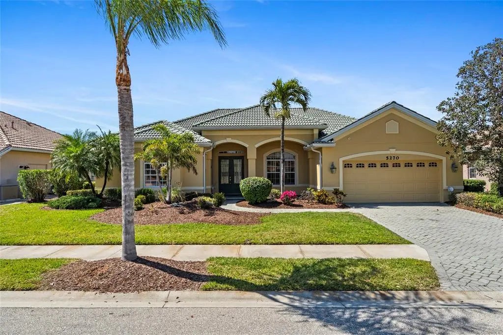 Welcome to 5270 White Ibis Drive, a stunning residence nestled within the highly sought-after gated community of Heron Creek Golf and Country Club in North Port, Florida. This beautifully designed home offers a perfect blend of luxury, comfort, and functionality, featuring 3 spacious bedrooms, 3 full bathrooms, and a versatile den ideal for a home office or study. With over 2,700 square feet of living space, the split and open floor plan is enhanced by elevated ceilings throughout, including elegant tray ceilings in the bedrooms, creating an airy and inviting ambiance.