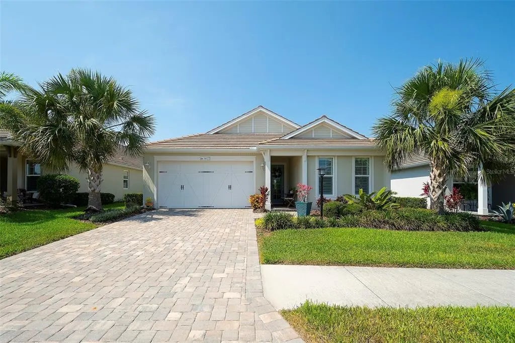 Welcome to this pristine home in coveted Lakehouse Cove at Waterside! Light and bright this 2 Bedroom + Den residence with 1,625 square feet of thoughtfully designed living space offers a tranquil retreat just steps away from the lively amenity center at Lakehouse Cove. An almost new home built in 2020 by Homes By Towne, this Dover floorplan with a West Indies elevation and a Southern lanai exposure allows for maximum enjoyment of your Florida lifestyle! The quality of the finishes include 8’ DOORS THROUGHOUT, tray ceilings, plenty of recessed lighting and CUSTOM PLANTATION SHUTTERS THROUGHOUT. The inviting foyer, kitchen and dining area are highlighted with added DESIGNER LIGHTING. In the kitchen, you’ll find upgraded 42” white custom cabinets, with extensive pull out shelves, contemporary stainless steel appliances, featuring a 5 burner GAS STOVE, and sleek quartz countertops. The stylish SUBWAY TILE BACKSPLASH & under cabinet lighting ties the space together. The great room is a cozy yet spacious area, with a tray ceiling and views of the expansive private backyard with PLENTY OF ROOM FOR A POOL and ability for fencing within HOA guidelines. the owner’s suite which features custom plantation shutters has an en-suite bath features a walk-in shower, dual sinks, upgraded plumbing fixtures and a quartz countertop that complete the bath’s refined look. The 2nd bedroom thoughtfully positioned for privacy with a full adjacent bath continues the home’s design with a shower and tub combo, vanity with white cabinetry and quartz countertops. The spacious flex room with plenty of natural light makes it an ideal space for work or relaxation. More features include, a well-appointed laundry room with a large soaking sink, a tankless gas hot water heater, in wall pest control, a two-car garage featuring PROFESSIONALLY HUNG STORAGE RACKS and epoxy floor. Plus, you'll have access to a 7-acre amenity center with a full calendar of events an onsite event coordinator, 24-hour fitness center, resort-style pool and spa, pickle ball, dog parks, boathouse, clubhouse with meeting rooms and full kitchen, fire pit and more. Don't miss your chance to live in this vibrant community in this exciting Waterside village!
