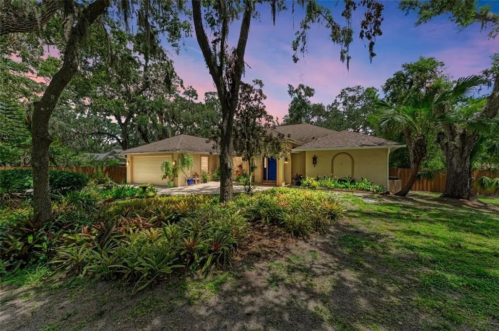 One-of-a-Kind custom retreat on OVER an Acre in Prime Location in the highly sought after Oak Grove Subdivision! With no deed restrictions and an optional $100/year HOA you will enjoy the serenity of feeling like you are in a private zen retreat but minutes from all the amenities. Past the long paver driveway you will discover this unique 3 bedroom, 2.5 bathroom home featuring a 2-car garage plus a detached workshop with a screened porch and equipped with A/C - perfect for hobbies, storage, or extra space. The interior features a split plan with an open kitchen/ family room, versatile living room/dining area, vaulted ceilings, double panel solid wood doors and charming arches. The kitchen showcases a large breakfast bar, beautiful solid surface counters and a built in workstation. The spacious primary bedroom offers an en-suite bathroom with walk-in closets including built in storage and a garden tub! From morning coffee to evening happy hour, the screened patio is the perfect spot to unwind and relax with friends and family. The sparkling heated pool area overlooks beautifully manicured gardens, creating a tranquil backdrop for peaceful outdoor living. The home’s Spanish-inspired architecture adds charm and character, making it truly one of a kind. The owners have taken impeccable care and pride in keeping the original charm while adding personal touches. This private oasis offers a serene escape and is a rare find in a convenient and highly desirable area located less than 4 miles from SRQ airport, 5 miles from University Town Center and 10 miles from the beautiful gulf beaches. This home offers a Sarasota address with Manatee County taxes— don’t miss your chance to own this distinctive unique property!