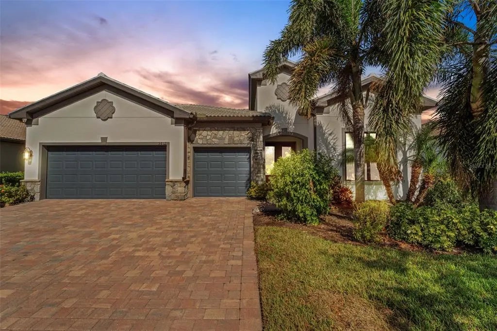 Introducing an exquisite luxury home in the highly coveted Hammock Preserve, an amenity-rich, gated community in the heart of central Sarasota. This stunning residence offers both convenience and leisure, situated just moments from downtown Sarasota and the world-famous Siesta Key Beach. As you approach the home, you’ll be captivated by the elegant stone façade, beautifully landscaped entryway, and grand double-door entrance, setting the tone for the refined elegance inside. Step through the 8-foot interior doors into a bright, inviting space. The chef's kitchen features 42" cabinets, pull-out drawers, a natural gas cooktop with vented exhaust, and upgraded stainless steel appliances, including a French door refrigerator and a double oven with convection cooking. The large quartz island with a deep single sink is perfect for both meal prep and casual dining. Additional highlights include a reverse osmosis system for the sink and refrigerator, as well as a whole-house water softener. The home is designed with a clean, neutral palette, complemented by designer lighting and fans, adding sophistication throughout. A dedicated study with glass French doors provides a quiet space for work or relaxation. The living room exudes character with a coffered ceiling and a freestanding electric fireplace w/marble accent. The spacious owner’s suite is a true retreat, offering walk-in closets with custom built-ins and a luxurious bathroom featuring an oversized walk-in Roman shower, dual-sink vanity with quartz counters, and a private water closet. Both guest bedrooms are designed as private suites, separated by a pocket door and a full bath—perfect for hosting family and friends. The Full 3-car garage offers ample space for vehicles and storage, complete with a separate air conditioning unit. Situated on a beautiful pond, the expansive lanai, shaded all day due to its north-facing position, is ideal for year-round enjoyment, while an extended pavered outdoor space provides additional room for sunbathing and admiring the picturesque water view. For added convenience, the front window is high-impact, and all other windows feature accordion shutters, making it easy to secure the home in minutes. The property also includes a whole-house Generac generator installed in 2024 with a 10yr Warranty, in-wall pest control, and a security system with cameras inside and out for peace of mind. Plus, with NO CDD fees, this home is as practical as it is beautiful. Hammock Preserve offers resort-style living with amenities such as tennis, pickleball, a community pool, fitness center, and Tiki bar. Don’t miss the chance to own this exceptional home in an incredible location! Fireplace, AC in garage, patio furniture on back lanai, grill and 4 televisions will convey.