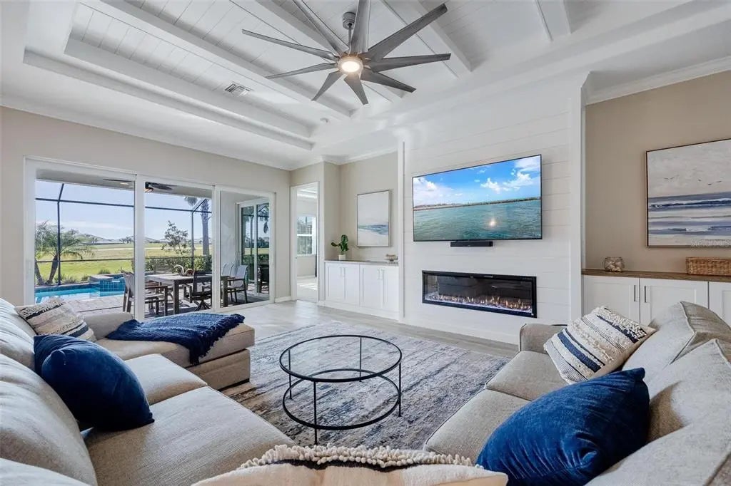 VACATION POOL/SPA HOME!!! Turnkey/Furnished, with GOLF MEMBERSHIP!!! Nestled among nearly 1,000 acres of preserve! This spacious 3-bedroom plus den, 3 bath luxury home offers an open concept floor plan featuring tons of great upgrades including SUMMER KITCHEN, PRIVATE POOL AND SPA, plank tile, stainless steel appliances, ornamental white granite, crown molding, built ins with electric fireplace, ship lap ceilings and much more!!! This amazing floorplan offers tons of privacy for everyone including 3 separate wings for you and your guests! The owner's suite boasts tons of space, two huge walk-in closets, separate his and hers vanities, enormous shower and access to the lanai. Guest bedroom includes ensuite bathroom! Oversized laundry room includes laundry cabinets, washer-dryer, and laundry sink! Spacious 3 car garage has epoxy coated floor. Community Features Guard Gated Entry, Stunning Championship 18-Hole Golf Course, 4 Community Satellite Pools, Main Resort Style Community Pool w Lap Lanes, Pool Cafe, 6 Har Tru Tennis Courts, 6 Pickleball Courts, 2 Bocce Courts, State of the Art Fitness Center, Separate Aerobics Room, Full-Service Spa! Great location about 4 miles from Publix/Home Depot shopping center, about 3 miles to Burnt Store Marina, about 8 miles to Punta Gorda Airport, about 9 miles to Downtown Punta Gorda. Hurry this beautiful home will not last long.