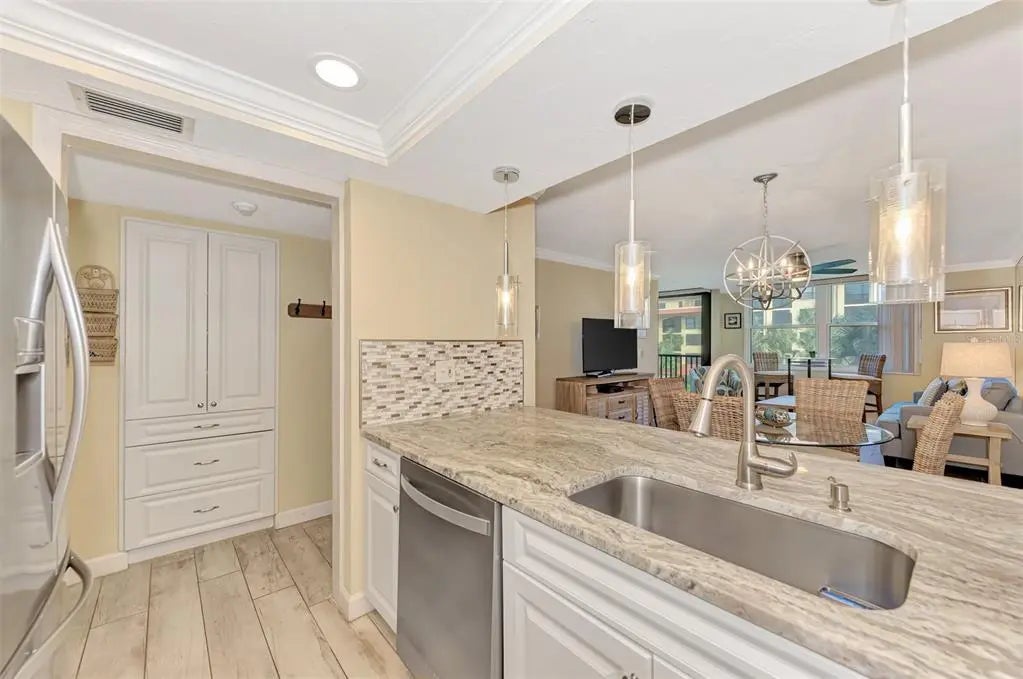 MOTIVATED SELLERS!!! Don’t miss this opportunity to enjoy the gentle sea breezes, world-renowned sunsets, and all that Siesta Key has to offer. This exceptional property at Tortuga is ready to become your slice of paradise! Purchase with ease knowing, ASSESSMENTS PAID IN FULL, Brand new roof, new boat docks, new HVAC! Welcome to Paradise at Tortuga on Siesta Key - Nestled on the tranquil southern tip of Siesta Key, Tortuga offers the perfect fusion of vibrant island living and serene coastal retreat. This sought-after community boasts stunning Gulf of Mexico vistas and easy access to the peaceful Bay, creating a haven for relaxation and recreation. From the moment you arrive, Tortuga impresses with its charming brick-paver streets, lush landscaping, and secure, private setting. Accessing your second-floor retreat is effortless with both elevator and stair options. Inside the home Elegance Meets Comfort - Step inside this beautifully upgraded residence and prepare to be wowed. Thoughtful enhancements include: Hurricane-impact windows and sliders for peace of mind Stylish wood-like tile flooring throughout Custom white cabinetry with built-ins and top-tier granite countertops Stainless steel appliances and an extended tiled backsplash Luxurious bathroom with dual shower heads, floor-to-ceiling tile, glass slider, and built-in seating A converted patio into a bright and inviting sitting room Guests will appreciate the sofa with a queen sleeper, and the spacious utility room offers flexible storage options or an owner’s closet for those renting seasonally. Tastefully furnished and ready for your personal touch, this home is move-in ready. Resort-Style Amenities Tortuga goes beyond the typical with amenities on both the Gulf and Bay sides: Brand New Bay-side boat dock (available for a small annual fee) and fishing pier Pickleball and tennis courts Heated indoor/outdoor pool with whirlpool jets and saunas Clubhouse, lending library, and gas grills Designated underground parking with storage cabinets Conveniently located across from dining options and just a trolley (this ride now will bring you to downtown Sarasota!) or Frog Hop ride to The Villages, Tortuga offers the ultimate in island living. Onsite maintenance, water, trash, basic cable, and internet are included for hassle-free ownership. Your Coastal Oasis Awaits!