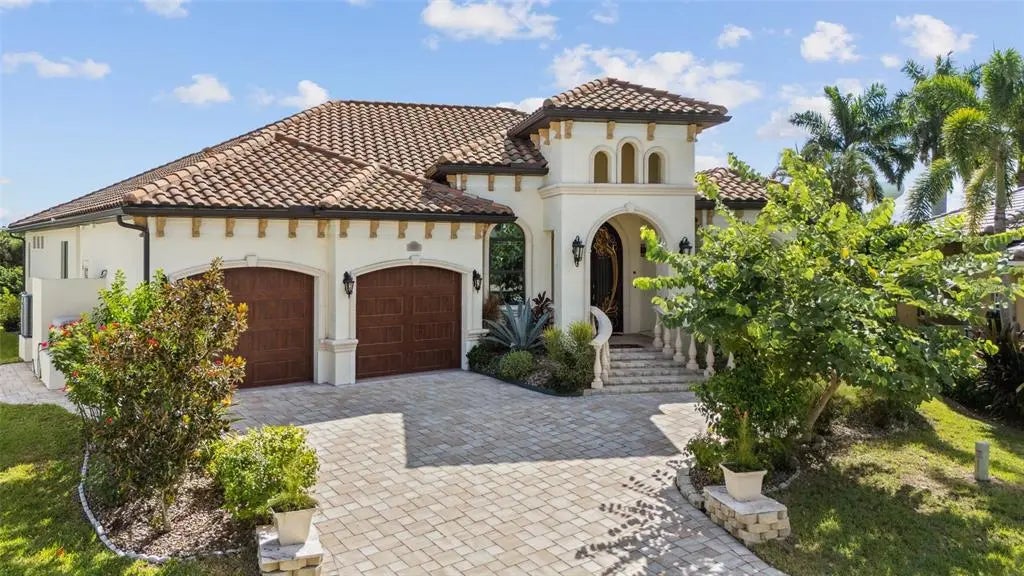 One or more photo(s) has been virtually staged. Nestled in the desirable canal community of Burnt Store Isles, this 2020-built custom home is a masterpiece of craftsmanship and elegance. Boasting 140’ on the water and a tranquil rim canal location, this residence offers the luxurious waterfront lifestyle you’ve been waiting for. Step inside through magnificent custom double arched doors made of wrought iron and glass measuring 10ft x 6ft. Once inside the grand foyer, you are drawn into the great room with 14’ cypress ceilings and an open floorplan ideal for entertaining. Grab a cocktail from the beautifully appointed wet bar or the perfect espresso from the built-in Miele coffee system with reverse osmosis water filtration system. The heart of the home is the stunning chef’s kitchen, with solid wood cabinetry, granite counters and a large island that boasts a quartz countertop with waterfall edges. The handmade copper kitchen sink and a striking copper range hood add an artistic touch to this gourmet kitchen. Throughout the rest of home, you will discover a world of bespoke details, from the hand-carved sinks that grace each bathroom to the etched glass showers that elevate your everyday routine. Wake up in the primary suite to the beautiful sunrise overlooking the lanai/pool area as well as the canal and mangroves for a private and relaxed feeling. Step into the luxurious primary bath, which boasts a roman walk-in shower with a hand carved glass surround, dual vanities featuring hand-blown glass sinks and beautiful granite countertops. Just off the bathroom is the large custom closet that has direct access to the spacious laundry room, making laundry a breeze. Perfectly accommodating overnight guests, the second primary suite in the guest wing of the home offers a spa-like retreat, complete with a large custom walk-in closet, luxurious steam bath for ultimate relaxation and direct access to the lanai. Outside, the expansive lanai beckons you to enjoy the Florida lifestyle with a private pool, perfect for lounging or entertaining. The lanai is stunning with its French style Leonardo stone floor surrounding a custom salt-water pool boasting two waterfalls and an outdoor kitchen. Beyond the lanai, a canal-front setting awaits, complete with a private boat dock and an impressive 16,000-pound boat lift, making it a boater’s paradise. Additional features include: Hurricane impact windows and doors, Louis Vuitton Octopus mailbox, 4-zone Amana AC, Thermador and Miele appliances, Toto Japanese bidet/toilets, water saving sprinkler system, climate controlled garage, 20KW Kohler whole house generator with a 500 gallon underground storage tank. This home’s perfect blend of luxury, functionality, and artistic detail creates an unrivaled living experience in one of Punta Gorda’s most sought-after waterfront communities. This is a must-see property, schedule your viewing today and start living in luxury.