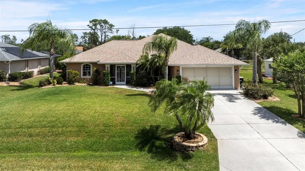 Welcome to your Florida dream at 1240 Alpinia Rd, North Port! Imagine sun-kissed mornings and starlit evenings in this charming 3-bedroom, 2-bathroom residence, nestled on a generous DOUBLE LOT graced with a mature, meticulously manicured lawn of vibrant ST. AUGUSTINE GRASS, enhanced by elegant CUSTOM CURBING. An automatic IRRIGATION SYSTEM ensures your outdoor oasis remains effortlessly lush. Enjoy peace of mind with a NEW ROOF installed in 2023, and added storm security thanks to an included GENERATOR. You'll also appreciate the added convenience of a secondary refrigerator, included in the garage. Picture yourself stepping out onto the expansive, screened-in lanai, your private gateway to a sparkling, HEATED IN-GROUND POOL. Pool furniture conveys. Mornings could begin with a refreshing swim, while afternoons melt away in the tranquil poolside ambiance. This substantial outdoor living space effortlessly blends relaxation and entertainment, perfect for hosting loved ones or simply unwinding under the warm Florida sun. As evening descends, your private backyard becomes an enchanting setting for laughter and starlit conversations. A versatile, POWERED SHED perfect for a workshop, hobby haven, or extra storage. Inside, discover bright and airy living spaces thoughtfully designed for both seamless entertaining and comfortable everyday living. The kitchen boasts modern appliances and ample counter space, ready for culinary adventures. Retreat to peaceful bedrooms, for rest and rejuvenation. With 1667 square feet of heated living space, there's room for everyone to feel at home. Don't forget the charming SCREENED-IN FRONT PORCH, an ideal spot for sipping morning coffee or enjoying gentle evening breezes. Conveniently located just a short drive from the pristine Gulf Coast beaches, world-renowned fishing spots in Charlotte Harbor, and the natural beauty of Myakka State Park, adventure is always within reach. Enjoy the ease of nearby shopping and dining options, all while relishing the freedom of no HOA fees. This isn't just a house; it's the welcoming embrace of the Florida lifestyle you've been waiting for. Don’t let your Florida dream slip away!