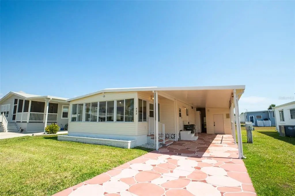 CHARMING FURNISHED 2 Bedroom, 2 Bathroom, Carport manufactured home located in the active 55+ Harbor Cove Community. CLICK ON THE VIRTUAL TOUR LINK 1 FOR THE VIDEO AND VIRTUAL LINK 2 FOR THE 3D TOUR. Spend quality time with friends and family in the open living room while whipping up family favorites in the kitchen. The EAT-IN kitchen offers all-white appliances, ample counter space, and a closet pantry. The master bedroom has an oversized built-in closet and a private bathroom with a single sink vanity and a walk-in shower. The guest room has a built-in closet and a guest bathroom nearby. Expand your living and entertaining space to the Florida room, where you can sip your morning coffee or unwind with your favorite evening beverage while enjoying the BEAUTIFUL Florida weather. There is a storage room for extra storage space and it doubles as a laundry room. HURRICANE RATED CARPORT - HURRICANE SHUTTERS. Harbor Cove is an active resident-owned WATERFRONT community with a clubhouse, two community pools, an exercise gym, shuffleboard & bocce ball courts, a private marina, a wood workshop with lots of craft activities and classes, and TONS of resident social events to keep you active year-round! Conveniently located near US 41 for easy access to local shopping, dining, LIVE entertainment, and award-winning beaches. Schedule your private showing TODAY!