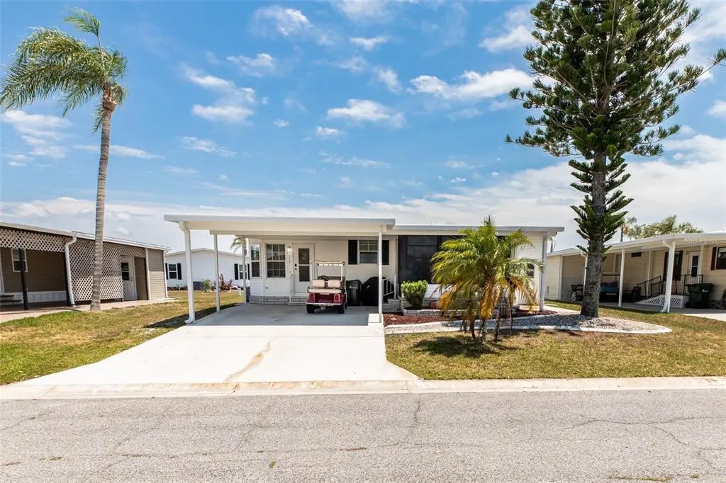 CHARMING FURNISHED 2 Bedroom, 2 Bathroom, Carport manufactured home located in the active 55+ Harbor Cove Community. CLICK ON THE VIRTUAL TOUR LINK 1 FOR THE VIDEO AND VIRTUAL LINK 2 FOR THE 3D TOUR. Spend quality time with friends and family in the open living room while whipping up family favorites in the kitchen. The EAT-IN kitchen offers all-white appliances, granite countertops, a coffee bar, and an off-kitchen dining room. The master bedroom has a walk-in closet and a private bathroom with a single sink vanity and a walk-in shower. The guest room has a built-in closet and a guest bathroom nearby. Expand your living and entertaining space to the screened lanai, where you can sip your morning coffee or unwind with your favorite evening beverage while enjoying the BEAUTIFUL Florida weather. There is a storage room for extra storage space and it doubles as a laundry room. 2024 A/C - 2024 WATER HEATER - 2023 WASHER/DRYER - 2023 RANGE & REFRIGERATOR. Harbor Cove is an active resident-owned WATERFRONT community with a clubhouse, two community pools, an exercise gym, shuffleboard & bocce ball courts, a wood workshop, a private marina, and TONS of resident social events to keep you active year-round! Conveniently located near US 41 for easy access to local shopping, dining, LIVE entertainment, and award-winning beaches. Schedule your private showing TODAY!
