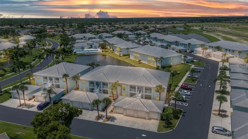 Discover this immaculate 2-bedroom, 2-bath condo with a den, featuring an open-concept floor plan, vaulted ceilings, and abundant natural light. Sliding glass doors from the dining and living areas lead to a private balcony overlooking a tranquil pond and fountain. The kitchen is equipped with a refrigerator, electric range, microwave, and dishwasher, all regularly maintained. Elegant water-resistant Parkay flooring, installed in 2022, flows throughout the home. The spacious primary suite boasts pond views, room for a king bed, dual closets plus a walk-in closet, and an ensuite bath with a large step-in shower. A true split floor plan places the second bedroom and full bath with tub/shower on the opposite side. Recent updates include hurricane shutters (2024) and a rescreened balcony (2025). Sabal Trace Colony offers resort-style amenities: a heated pool, fitness center, clubhouse, and walking paths—all with maintenance-free living. Conveniently close to shopping, dining, golf, and Gulf Coast beaches!