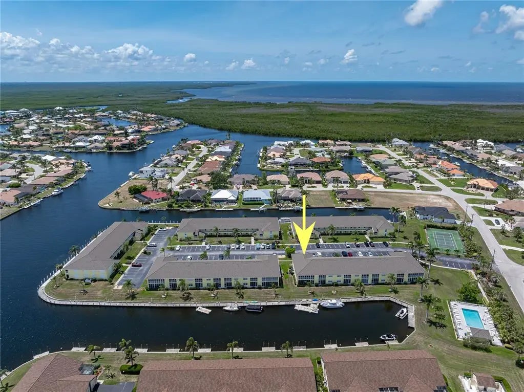 END-UNIT CONDO IN PGI W/UPDATED INTERIOR & DIRECT SAILBOAT ACCESS - Spacious 3 bed/2 bath end-unit at Spinnaker Point in Punta Gorda Isles w/quick sailboat access to Charlotte Harbor. Docks are available on a 1st come/1st serve basis (dock space can accommodate boats up to 34 feet & at time of listing, dock space is available). Condo features NEW luxury vinyl plank floors throughout main living areas, granite counters, stainless steel appliances & fresh interior paint. Open floor plan offers a large great room, formal dining area & updated kitchen w/ample cabinet space, breakfast bar seating & tray ceiling detail. Lots of natural light thanks to end-unit location. Enjoy year-round water views from the screened & vinyl-enclosed tiled lanai that spans the width of the unit. Lanai has new epoxy flooring for an updated look & feel. Owner's suite has oversized walk-in closet & private bath w/dual sinks & walk-in shower. Guest rooms are large w/ample closet space. The guest bath offers a tub/shower combination. Separate laundry room includes full-sized washer/dryer, utility sink & overhead storage. Unit includes an assigned parking space w/ample guest parking available. Whether you’re a full-time resident or looking for your seasonal getaway, don’t miss this move-in ready (furniture optional) waterfront opportunity. Other updates include NEW HVAC (2023). Condo amenities include a tennis/pickleball court, heated pool & wraparound dock that is just waiting for your boat or kayak. Located near St. Andrews Golf Course - you choose boating from your backyard or hitting the links out the front door. This condo has everything you need to enjoy the Florida lifestyle. Punta Gorda also boasts a lively music & art scene w/live music & art exhibits/fairs frequently found around town. Come find out why Punta Gorda is often voted one of the best places to live, work & retire in Florida. Make an appointment today. **FURNITURE NEGOTIABLE/OPTIONAL**