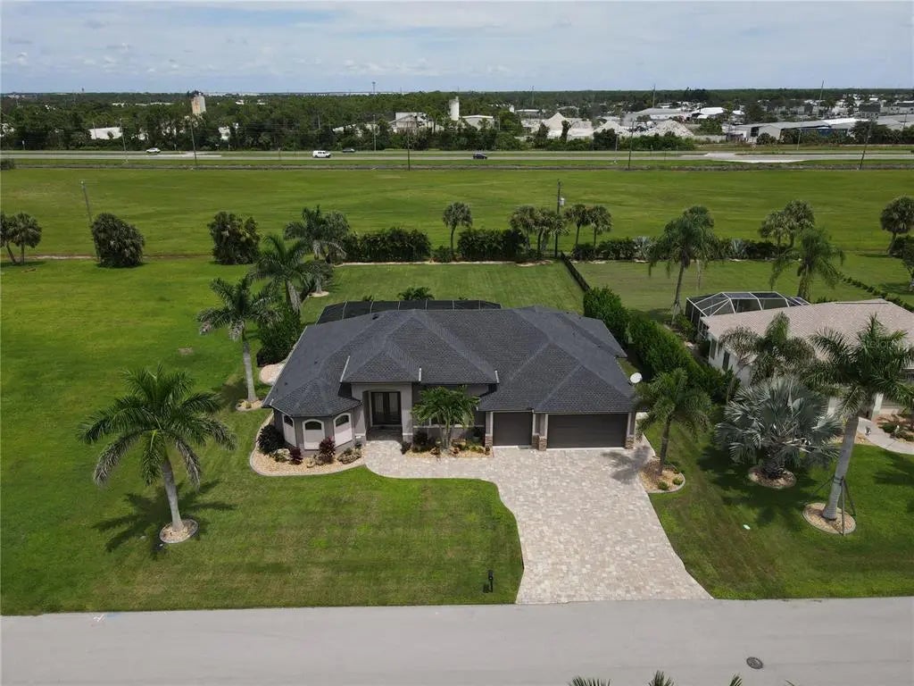 Welcome to Burnt Store Meadows and this amazing 2017 custom built 2616 sq. ft. 4 bedroom, 3 bathroom with a 3 car garage and pool home. The pictures can not do this home justice as it is even nicer in person. As soon as you pull into the oversized brick paver driveway you will notice that this home should be in Better Homes and Gardens as the landscaping is second to none in this neighborhood. This home sits on a oversized 20,000 sq. ft. lot with a fenced in backyard. The pool area and backyard is like a huge playground for the little ones or your favorite pet. Brick paver side walks give you access from the front to back and you still haven't even made it inside yet. The 3 car garage has a commercial epoxy floor already done with additional overhead storage already installed. Once you go inside you will notice how many extras were put into this home such as high ceilings with tray recesses and double crown molding. Plank looking porcelain tile runs throughout the entire home except for the mother in law suite. There is an additional room that adjoins one of the bedrooms and is an additional 15 x 12 that is a mother in law type set up with a private bathroom and a huge walk in closet. The kitchen has plenty of cabinet space and granite counter tops that compliment the stainless steel appliances. All interior doors are 8 ft intead of standard 7 ft. doors. The primary room measures in at 16 x 15 and overlooks the pool and backyard areas. A large 12 x 7 walk in closet gives you lots of room for storage. A his and her sink set up in the primary bathroom is complimented by a double entry walk in shower area that is finished off with swinging tempered glass doors. The entire living area is like one large great room and it has a spectacular view of the pool area and back yard through 8 ft. hurricane rated triple slider pocket doors that makes the 30 x 10 ft. covered lanai feel like an extension of the family room. Such a great set up for entertaining or holidays with the family. The pool says it all with the phrase "Its 5 O'clock somewhere" as this home feels like it is full of fun! A water softner is also already installed. The location of this home and neighborhood is also hard to beat as a Home Depot and Publix Shopping Center is literally just minutes away and a Walmart is right around the corner. Downtown Punta Gorda and all it has to enjoy is just minutes away as well. You can walk downtown on the miles long walking path as it winds itself down the water side of the Charlotte Harbor. You will see the war memorial, a huge playground area at the park and you can stop and learn about so many iconic spots as well. There is the fan favorite farmers market every Saturday morning, the Christmas tree lighting ceremony, all the different cuisines to choose from at your favorite restaurants along with sports bars and your favorite pubs. Of course everyone loves sitting and enjoy a great meal at Titi's overlooking the Charlotte Harbor. For all you golfing enthusiast, there is 8 different golf courses within a 20 minute drive and multiple places around town to put the boat or wave runners in the water. And don't forget about all the Pickleball courts! This home being priced at $268 a sq. ft. is simply to good to pass up, so hurry now to set up your showing before this home is gone.