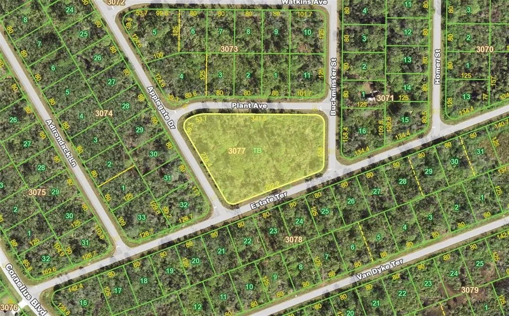 Build your Dream Home on this spacious and rare parcel of almost 2 Acres. Your Southwest Florida Oasis beckons you with flexibility of home size, style and compass orientation. The expansive property boasts a 336-foot frontage along Plant Avenue, and is bordered by 4 streets, offering an opportunity to create your own family compound. Your beautiful home will be nestled in a quiet, tucked away setting, providing privacy and serenity, (and outside of a Scrub Jay Boundary area), while conveniently located close to numerous amenities: Gulf of Mexico Beaches. World Class Boating and Fishing on Charlotte Harbor and the Gulf of Mexico. Many Marinas and Boat Ramps throughout the area. Plus Shopping, Restaurants, Entertainment and quick and easy access to US 41/Tamiami Trail and US-I-75. Don't miss your chance!