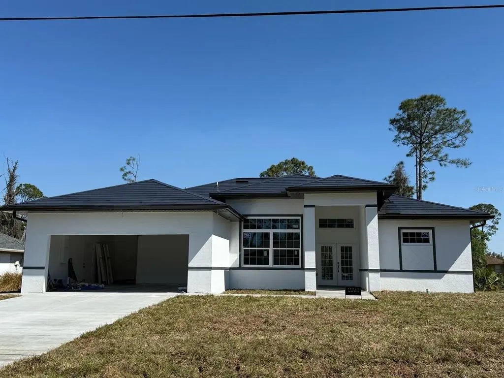 Stunning New Luxury Smart Home with Tesla Solar Roof – Experience cutting-edge design and sustainable living in this meticulously crafted residence, perfectly situated in a desirable North Port neighborhood. This home blends elegance, efficiency, and modern convenience, featuring a Tesla solar tile roof that powers your home while preserving sleek curb appeal. Step inside to soaring high ceilings throughout (with select living spaces reaching higher), creating an airy, open atmosphere. The chef’s kitchen boasts gorgeous quartz countertops, custom soft-close shaker cabinetry, and premium stainless steel appliances — the perfect stage for entertaining or casual dining. The seamless flow between kitchen, dining, and living areas is enhanced by abundant natural light and stylish designer finishes. The luxurious primary suite offers a spa-inspired en-suite bath with a walk-in shower, dual quartz vanities, and spacious walk-in closet. Every detail of this home has been curated for comfort and beauty, from energy-efficient systems to smart-home features. Enjoy the Florida lifestyle outdoors with the lanai and plenty of room to add a pool. Located near shopping, dining, top-rated schools, and Gulf beaches, this property delivers both luxury and practicality in one package.