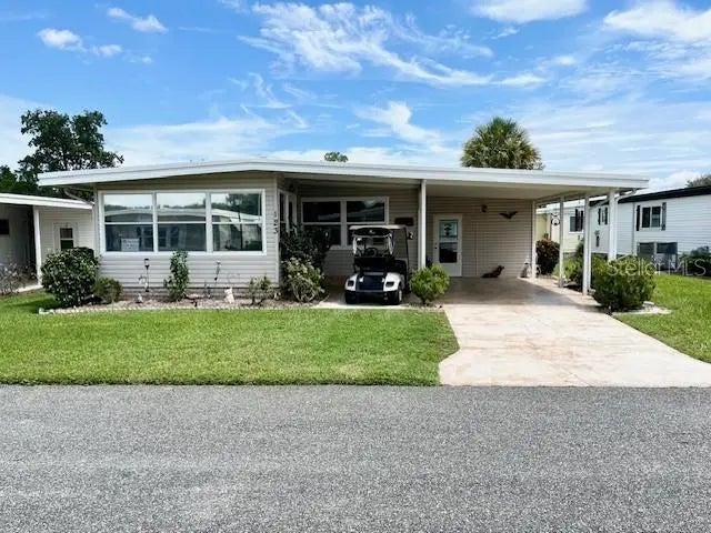 A dedicated golf cart pad adds convenience and makes getting around the community effortless. This charming home is the perfect blend of comfort, function, and Florida lifestyle..........Hawthorne at Leesburg is an active, resident owned, 55+ cooperative, waterfront, gated community, with beautifully landscaped grounds, lakes with illuminated fountains and a relaxing and comfortable gazebo. The affordable monthly maintenance fee of $346 includes water, sewer, lawn mowing, private emergency services and storage space for recreational vehicles, boats, trailers and much more! The beautiful clubhouse is complete with a full-time program coordinator, more than 100 different activities and seating for 550. It has a hospitality lounge, card rooms, craft rooms, billiard room, fitness center, library, fine arts room and many more. There is excellent fishing, outdoor geo-thermally heated pool and two enclosed therapeutic pools. Hawthorne boasts a private marina monitored by an electronic security system with over 120 boat slips and access to the Harris Chain of Lakes and beyond.