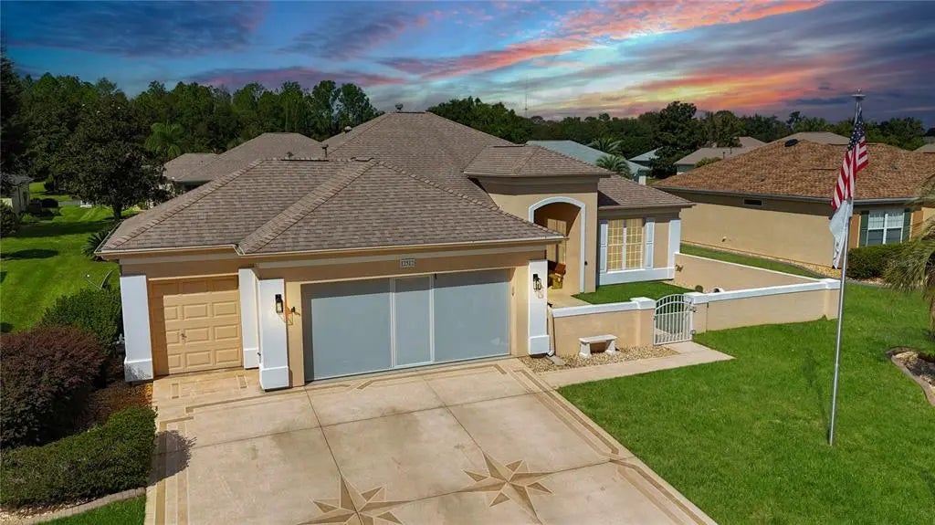A house of this caliber does not hit the market often. This was meant to be their dream home but times have changed so make it your dream home. This one checks many of the boxes for "wants & needs" for many buyers. Upgrades galore! Great curb appeal. The courtyard is great for entertaining and very dog friendly. This home is concrete block and stucco and features both a breakfast nook and formal dining should you desire to have that or with this open floor plan...flex the space however you need/want it. All of the flooring has been replaced with matching LVP throughout. Designer remote ceiling fans throughout. Interior recently painted including trim. Window treatments are Plantation Shutters or custom cellular blinds. The kitchen has granite counter tops with tile backsplash. Newer stainless steel appliances (microwave 11/2025), closet pantry, island, breakfast bar and a nook overlooking the courtyard. The living room/dining room combo is a great space and a stone electric fireplace with custom bookcases has been added for storage and memorabilia. Another exciting feature is that the lanai has been enclosed with glass windows, a mini split for climate control and also feature the LVP flooring. Talk about a great "Man Cave" and adds another 384 square feet to the living area that is not reflected in the Marion County property appraiser's website. Does football parties come to mind? The summer kitchen complete with mini fridge and gas and charcoal grills with awnings is right outside the door. The primary suite is huge so if you are looking for space, this is the home for you. It also features a bay window with custom bench storage and a door that leads to the lanai. Primary bath has been completely redone and has a wheelchair accessible shower so not only beautiful but functional. The guest bedroom and bath are sure to delight even the pickiest visitors. A den is located off of the entry way and boasts French doors for privacy. Inside laundry room with storage cabinetry. Extended garage with golf cart bay with privacy screen with built-in door for the 2-car garage, newer garage door openers, deep utility sink and pull-down storage. HVAC 2018, Shingles 2021, re-piping in attic June 2020. Irrigation well on this property shared with neighbors. This home is located in the award winning gated community of Del Webb's Spruce Creek Golf and Country Club. It features 4 - 9 holes golf courses, 3 pools, softball field, Veterans Memorial, outdoor pavilion, bocce ball, pickleball and tennis and numerous clubs and other activities. Make it home today
