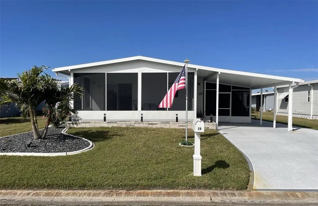 Experience the Florida lifestyle in this beautifully updated 2-bedroom, 2-bathroom manufactured home located in the highly desirable Harbor Isles community. This open-concept gem features a newly remodeled kitchen with stunning dove grey solid wood cabinets, granite countertops, and brand-new stainless steel appliances. An oversized sink and abundant counter space make it a dream for cooking and entertaining.