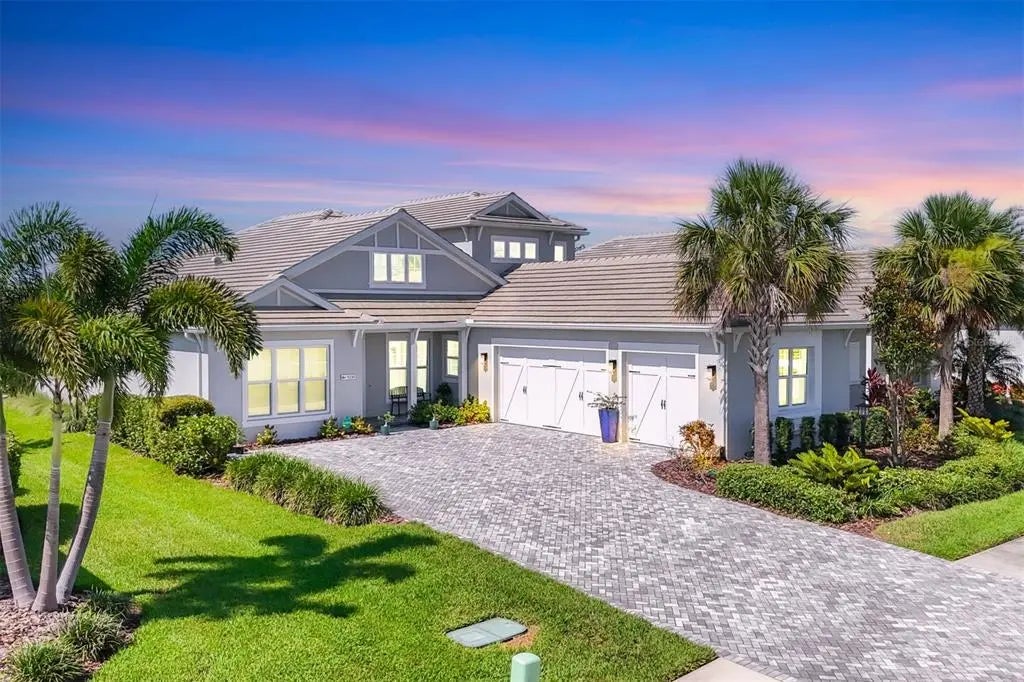 Welcome to your dream home in the highly sought-after community of Lakehouse Cove at Waterside in Lakewood Ranch Florida. This immaculate and one of a kind, custom-designed Tideland model combines contemporary elegance with impeccable craftsmanship, offering the perfect sanctuary for luxurious living and entertaining. Step outside to your heated saltwater pool and spa, adorned with deck jets and a panoramic clear view screen—ideal for relaxing or hosting memorable gatherings. The expansive lanai offers abundant space for outdoor living and dining, complemented by a built-in gas grill and custom cabinets, making every day feel like a vacation. The charming front porch overlooks a peaceful park with water views, setting the tone for the elegance inside. As you enter, you’re greeted by soaring 12-foot ceilings with decorative tray accents, porcelain tile floors throughout the first level, and an array of upscale finishes that elevate your daily living experience. The heart of this home is the oversized chef’s kitchen, featuring top-of-the-line built-in appliances, including a gas range, shaker cabinets with soft-close wood pullouts, and luxurious quartz countertops. The open-concept design seamlessly connects to a spacious dining area and a grand living room with a built-in modern accent wall feature and electric fireplace. Floor-to-ceiling hurricane impact sliders open to the outdoor oasis, blending indoor comfort with outdoor beauty. Wake up to sunlight streaming into the generous primary bedroom, complete with sliders leading directly to the pool. The spa-inspired primary bath boasts dual vanities, a freestanding soaking tub, makeup vanity, and a sleek walk-in upgraded shower—creating a perfect retreat. Custom designer large walk-in closets with built-in organizers maximize storage and style. The front of the home features a secondary bedroom with its own ensuite bathroom and walk-in custom closet—ideal for guests or family. Another first floor bedroom with pool views and a patio slider door. The upgraded laundry room with folding stations and a built-in mudroom bench enhance daily convenience. Upstairs, enjoy a second living area with a built-in kitchenette, an oversized private bedroom with sweeping preserve views, a large custom walk-in closet, and a full bathroom—perfect for guests or family members seeking privacy. Lakehouse Cove offers resort-style living at its finest: a sparkling pool, state-of-the-art fitness center, pickleball courts, a private marina with kayak and canoe launches, and a scenic water taxi to Waterside Place’s vibrant town center. All this within a community designed for leisure, connection, and luxury. Additional Features include a Spacious three-car garage for vehicles and hobbies, Elegant plantation shutters throughout, Enhanced curb appeal with lush landscaping, a Generac whole house generator, new interior paint throughout, custom motorized power window treatments, upgraded HVAC system, wall box Electric Vehicle charger in garage, drop down garage ceiling storage racks and lots of built in custom storage cabinetry, whole home alarm system and security cameras inside and outside of the home, and a upgraded pool/spa LED lighting system. Don’t miss your chance to own this extraordinary home. Contact us today to schedule a private tour and experience firsthand the beauty, sophistication, and resort-style amenities that await you in Lakehouse Cove at Waterside.