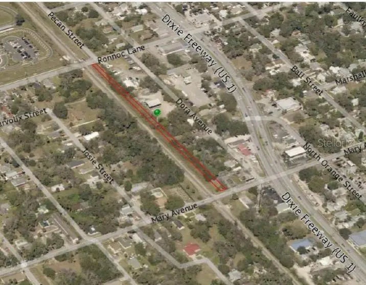Long, narrow parcel of land just east of the railroad tracks. Parcel Runs from Ronnoc Lane south to Mary Avenue.