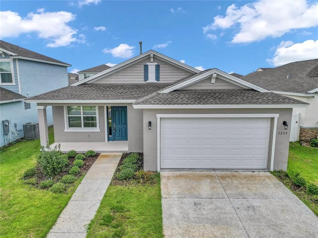 One or more photo(s) has been virtually staged. ***MOTIVATED SELLER*** Discover the perfect blend of comfort, style, and exciting community living in this beautifully maintained 3 bedroom, 2 bathroom upgraded Currant model home located in the heart of the highly sought-after Calesa Township. This 1856 sf home has upgraded tile flooring throughout the home and an open floorplan that allows natural light to fill the rooms. The well-appointed kitchen has granite countertops, rich-dark wood cabinetry, and stainless steel appliances. A screened lanai and a great rocking chair front porch gives multiple options for your morning coffee, family gatherings, or a space for relaxation. The 2nd and 3rd bedrooms offer ceiling fans, ample closet space, and share the secondary bathroom with quartz counters and a tiled tub/shower. The primary suite has a large walk-in closet and a well-appointed bathroom complete with dual vanities and a glass-enclosed tiled shower. Enjoy access to the unmatched amenities of Calesa Township, a master planned community with amenities for you to enjoy such as: community pool, playgrounds, basketball court, pump track, skate park, walking trails, and more coming soon. Your low HOA fee includes a gated entry, trash pickup, and a membership to FAST (Florida Aquatic Swimming and Training) up to a family of 4.