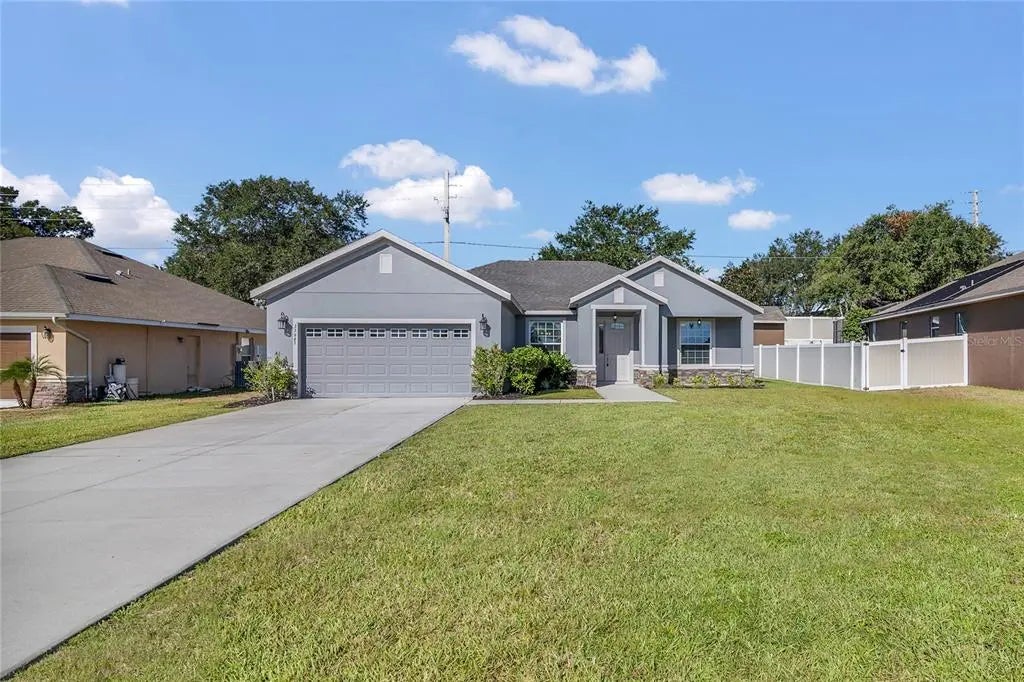 Welcome to the beautiful community of Emerald Pond in Leesburg! This wonderful 3-bedroom, 2-bath home is perfect for your family and features a formal dining area, ideal for gatherings and special meals. The open-concept living and kitchen area creates a spacious and inviting atmosphere, with the kitchen showcasing real wood cabinets, a pantry, granite countertops, a breakfast bar, and stainless steel appliances. The master suite offers a peaceful retreat with walk-in closets and a private ensuite bathroom, complete with a dual vanity and large shower. A split bedroom floorplan provides added privacy, with two additional bedrooms and a guest bathroom located on the opposite side of the home. Sliding glass doors from the living room lead to an open lanai, perfect for relaxing or entertaining. A dedicated laundry room and a two-car garage complete this fantastic home. Don’t miss your chance to see it—schedule a visit today!
