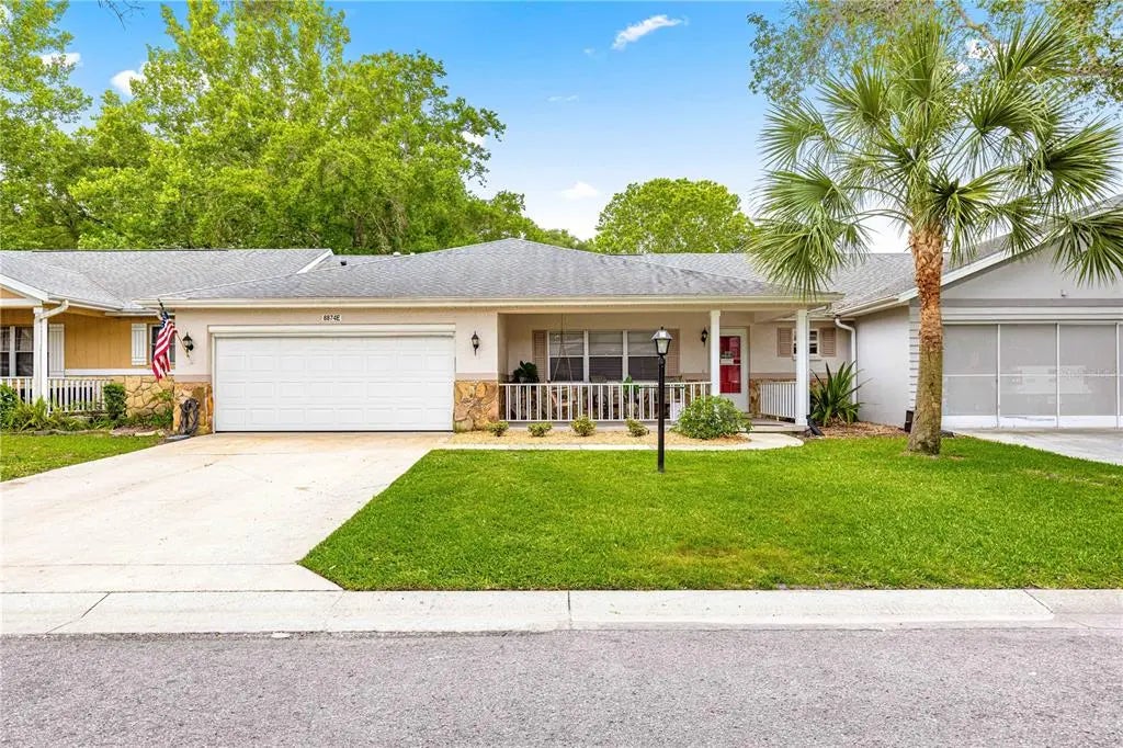 Welcome to Your Completely Updated Retreat in On Top of the World! Located in Ocala’s highly sought-after 55+ gated community, This home is a beautifully renovated 2-bedroom, 2-bathroom villa that blends sophisticated design with comfortable, low-maintenance living. Offering 1,761 square feet of thoughtfully updated space, this home invites you to relax, entertain, and enjoy the incredible lifestyle that On Top of the World is known for. From the moment you walk in, you'll notice the elegant engineered hardwood flooring that stretches throughout the main living areas, setting a warm and inviting tone. The spacious living room flows seamlessly into a stunning, fully updated kitchen, complete with gleaming granite countertops, a large center island, crisp white cabinetry, and a suite of stainless steel appliances—ideal for both casual dining and entertaining guests. At the back of the home, a bright and airy sunroom provides the perfect spot to enjoy your morning coffee or unwind with a good book, overlooking the serene neighborhood setting. Just off the sunroom is a versatile bonus room, ideal for use as a third bedroom for visiting guests, a hobby area, or a quiet home office or den. The spacious primary suite offers a relaxing retreat, highlighted by a barn door entry to the en-suite bathroom, which features dual vanities with granite countertops, double closets, a glass-enclosed shower with bench, and a linen closet for extra storage. The second bedroom is generously sized with plush carpet and a built-in closet, conveniently located near a stylish guest bath with a tub-shower combo and granite single sink vanity. Additional features include fresh interior paint, modern lighting, ceiling fans, and ample storage throughout, creating a clean, move-in-ready environment. As a resident of On Top of the World, you’ll have access to a vast array of world-class amenities including multiple clubhouses, swimming pools, fitness centers, pickleball and tennis courts, racquetball, walking trails, a hobby building, and even an RC flying field. The community is golf cart friendly and offers social clubs and activities designed to suit a wide variety of interests and lifestyles. Golf memberships are available for residents. This home offers the rare combination of quality upgrades, flexible living space, and an unbeatable location in one of Ocala’s most vibrant communities. Don't miss this opportunity—schedule your private showing today and discover everything this exceptional home and community have to offer!