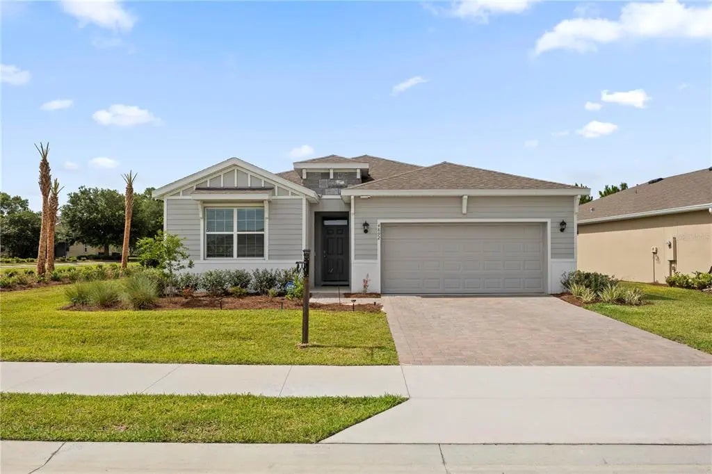 Welcome to this nearly new 4-bedroom, 2-bath Delray model by DR Horton, built in late 2023 and ideally positioned on a premium oversized corner lot near the rear gate—offering added privacy and easy access. This thoughtfully designed home blends comfort, function, and smart upgrades, delivering the ideal Florida lifestyle. Step inside and discover a well-planned split floorplan with upgraded ceramic tile flooring in the primary bedroom and 2-inch louvered blinds throughout the home. The spacious primary suite features large windows that frame peaceful natural views, and the ensuite bathroom offers dual granite vanities, a glass-enclosed tiled shower, and dual walk-in closets. Three additional bedrooms provide versatile space for guests, family, or a home office. The second full bath also features granite countertops for a cohesive, upscale feel. The heart of the home is the open-concept kitchen, living, and dining area—perfect for entertaining or relaxing with family. The kitchen boasts granite countertops, stainless steel appliances, recessed lighting, a walk-in pantry, abundant cabinetry, and a large island with bar seating. Step outside to the screen-enclosed lanai, perfect for enjoying the outdoors in comfort and privacy. Technology and security are major highlights of this home. The owner upgraded the already-robust ADT “Fort Knox” system to include glass-break sensors on windows and doors, a bedroom alarm, four exterior security cameras with remote access, and a dedicated mesh Wi-Fi system for enhanced privacy and backup connectivity. The HOA makes life easy with comprehensive services that include full lawn and landscape maintenance (mowing, irrigation, weeding, fertilization, bed coverage, and plantings), high-speed internet, access to resort-style amenities, and controlled gated entry systems. Residents enjoy world-class amenities including indoor and outdoor fitness centers, group classes, over 20 miles of walking and biking trails, tennis, pickleball, bocce, fishing, kayaking, paddle boating, and more. Homeowners also receive exclusive discounts at the on-site restaurant, spa, and golf course. This isn’t just a home—it’s a lifestyle. Schedule your private showing today!