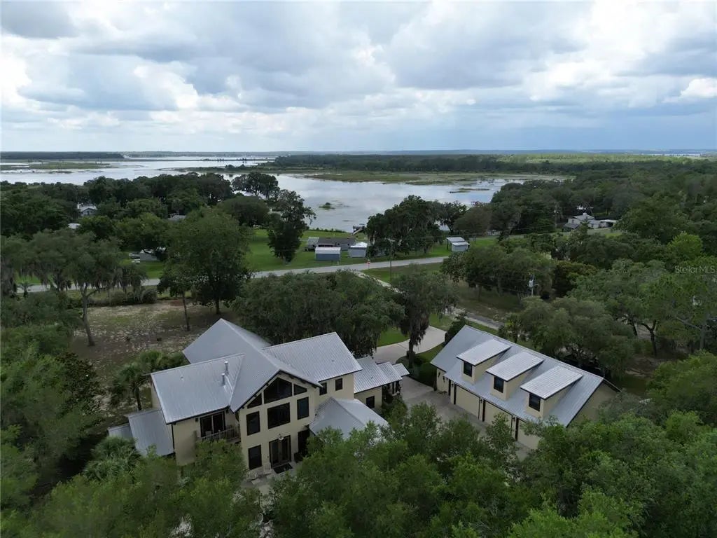 Welcome to the Manor House at Lake Kerr – a truly one-of-a-kind custom estate, artfully designed with exceptional craftsmanship, high-end finishes, and timeless architectural detail. From the grand entrance framed by dramatic cypress pillars to the intricate millwork and travertine flooring throughout, every element exudes quality and elegance. The main residence features 3 bedrooms—potentially 4—and 4.5 bathrooms. The expansive first-floor primary suite offers French doors opening to the rear terrace, a private sitting room with fireplace and dry bar with refrigerator, a spa-inspired bathroom with vanity area, and a generous dressing room. Upstairs, all bedrooms enjoy French doors that open to covered wood balconies. One spacious bedroom includes an ensuite bath, while another features an additional sleeping loft—ideal for extra guests. A charming upstairs sitting room with its own fireplace connects to a Jack and Jill bathroom and could easily be converted into a fourth bedroom. The formal entry is nothing short of spectacular, where soaring cypress log pillars and a hand-painted mural make a memorable first impression. The great room features cathedral ceilings, a dramatic two-story dry-laid stone fireplace, and custom built-ins. An open-concept kitchen anchors the living space with a center island, breakfast bar, and a large butler’s pantry—equipped with two additional refrigerators and ample storage. Just off the kitchen, a sunken bar opens seamlessly to the outdoor entertainment terrace, complete with built-in grill, fire pit, and an electrical hookup for a future spa. The three-bay tandem garage is ideal for storing watercraft, ATVs, or other recreational gear. Above the garage, a versatile bunkhouse includes a full bath and kitchenette—perfect for a gym, home theater, or guest suite. Set on 1.27 acres with panoramic views of Little Lake Kerr, (the main home recently appraised in July for $1m) the estate also includes two additional parcels: A 0.17-acre lot (parcel ID 10829-001-02) with approved plans for a guest house A 0.22-acre canal-front lot (parcel ID 10753-001-53)featuring a 2012 two-bedroom, two-bath manufactured home—ready for interior updates and boathouse improvements. The boat ramp is situated next to the property on 242nd Ave. This exceptional property is a rare opportunity to own a refined lakeside retreat with room to grow, entertain, and enjoy the very best of Florida living.