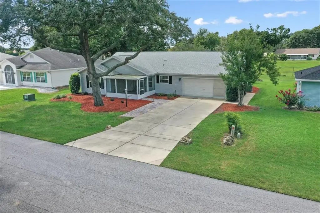 Escape before the first snow fall!! This home has been recently refreshed and ready for a new owner and quick closing. This 3-bedroom, 2 bath home includes a stunning kitchen with upgraded cabinetry, soft close features on the doors and drawers, lower slide out storage shelves, crown molding and granite counter tops. The kitchen includes a breakfast nook, 2 Pantries and a Bosch dishwasher. The floorplan features a large living room with vaulted ceiling, dining area and eat in kitchen.! The triple-split bedroom layout offers each bedroom privacy and the 3 hall closets offers ample storage. The flooring is tile in the living areas with the bedrooms and dining area offering newly installed vinyl plank flooring. The enclosed lanai includes newer windows and air conditioning offering a formal dining room or additional entertaining space for game nights! This home includes front and rear screened enclosures. Recent interior improvements include both bathrooms being remodeled, Vinyl windows with storm covers, ceiling fans with remotes and interior paint. Exterior upgrades and improvements include New Roof in 2024, Vinyl windows in 2008, Screen room and patio slab in 2023. Additional features include Leaf Filters on the gutters, irrigation system, garage service door, utility sink in the garage, insulated garage door and insulation in the ceiling of the garage. The back yard offers a park like setting overlooking the greenbelt area. Two minutes in the golf cart or a short walk and you will arrive at the amenities of Marion Landing. Amenities include bowling, swimming, exercise equipment, clubhouse activities and monthly social mixers! The monthly HOA fee includes all these amenities and your water and sewer. This is an active 55+ community in the heart of Southwest Ocala with excellent access to shopping, restaurants and medical facilities.