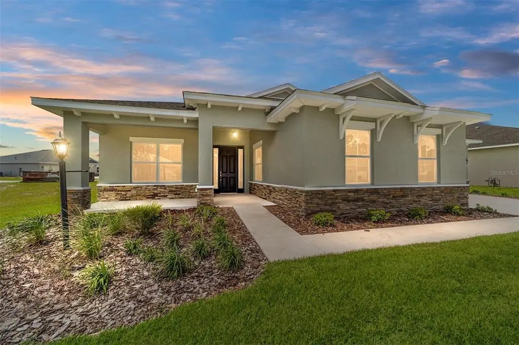 Welcome to the Magnolia Model, a beautifully designed new construction home located in the desirable LongLeaf Ridge neighborhood at On Top of the World, Ocala’s premier 55+ active adult community. This home offers 2 bedrooms, 2.5 bathrooms, a versatile flex room, an oversized 2-car garage, and an attached golf cart garage! Step inside to find luxury vinyl flooring throughout, and an open floor plan that perfectly combines style and functionality. At the front of the home, the flex room with French doors creates a private space for a home office or hobby room. The living area is light and bright, featuring a 4-panel sliding door that opens to the screened lanai, ideal for indoor-outdoor living. The dining space, highlighted by four floor-to-ceiling windows overlooking the backyard, creates a stunning backdrop for everyday meals and entertaining. The gourmet kitchen showcases quartz countertops, premium white staggered cabinetry with crown molding, under-cabinet lighting, stainless steel appliances, and a walk-in pantry—a perfect blend of beauty and convenience. The primary suite is a spacious retreat with a large 3-panel window with blinds and a huge walk-in closet. The spa-inspired en suite features a double vanity with quartz counters and a zero-entry tiled shower with built-in bench, offering both accessibility and luxury. With its elegant finishes, thoughtful layout, and outstanding community amenities, this Magnolia model is designed for both comfort and style. Don’t miss your opportunity to own a brand-new home in On Top of the World—schedule your private showing today!