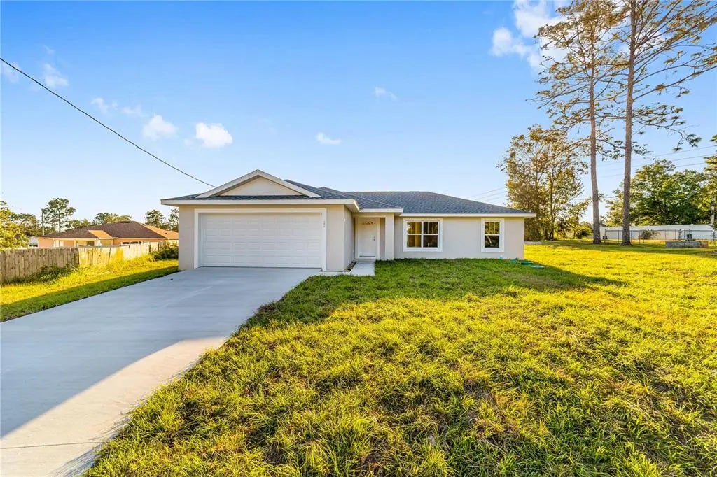 Home is complete! This gorgeous brand-new home located in SE Ocala is the ideal escape from the hustle and bustle of city life! With an open floor plan, pleasing neutral colors and vinyl plank flooring throughout, this 3-bedroom, 2-bathroom residence has all the charm and comfort any family could desire. Showcasing shaker style cabinets with granite counter tops in the kitchen, a washer/dryer hook up in the inside laundry for added convenience, plus a stainless-steel appliance package, this home is sure to impress. Covered back lanai. Enjoy your time in the neighborhood while nearby shopping, dining, medical centers and natural springs keep life exciting. Plus, its location near pristine rivers and springs allows for outdoor activities where adventure finds you! Photos of a model home not at this location. Color schemes may very.