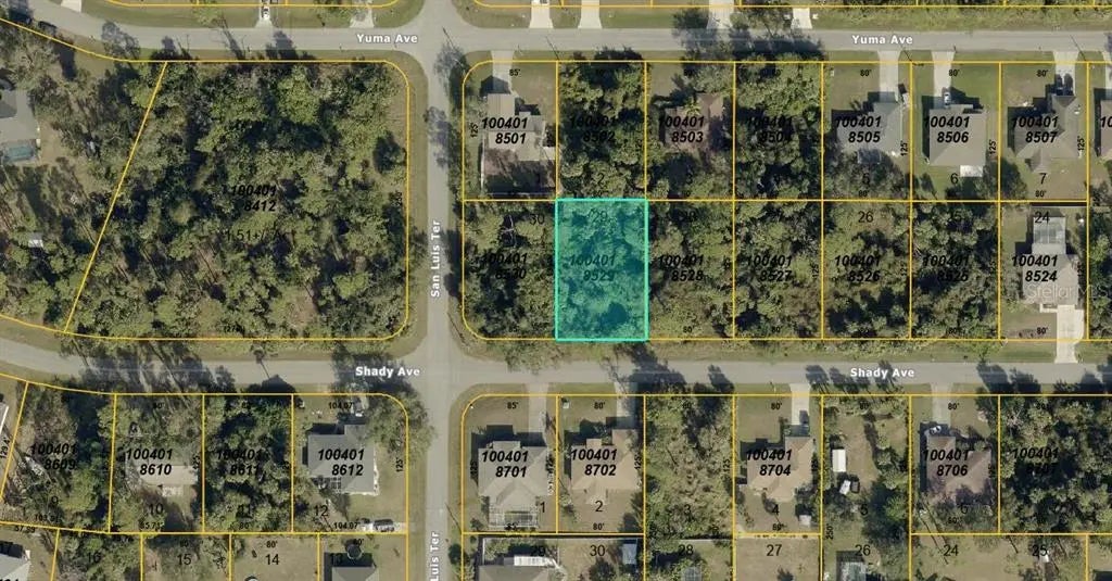 Fantastic opportunity to own a 10,000 sq ft unimproved residential lot located on Shady Ave, just off the intersection of Shady Ave and San Luis Terrace in desirable North Port, Florida. This property sits in a quiet, developing neighborhood with no HOA, offering flexibility and freedom to build your custom home or hold as a long-term investment.