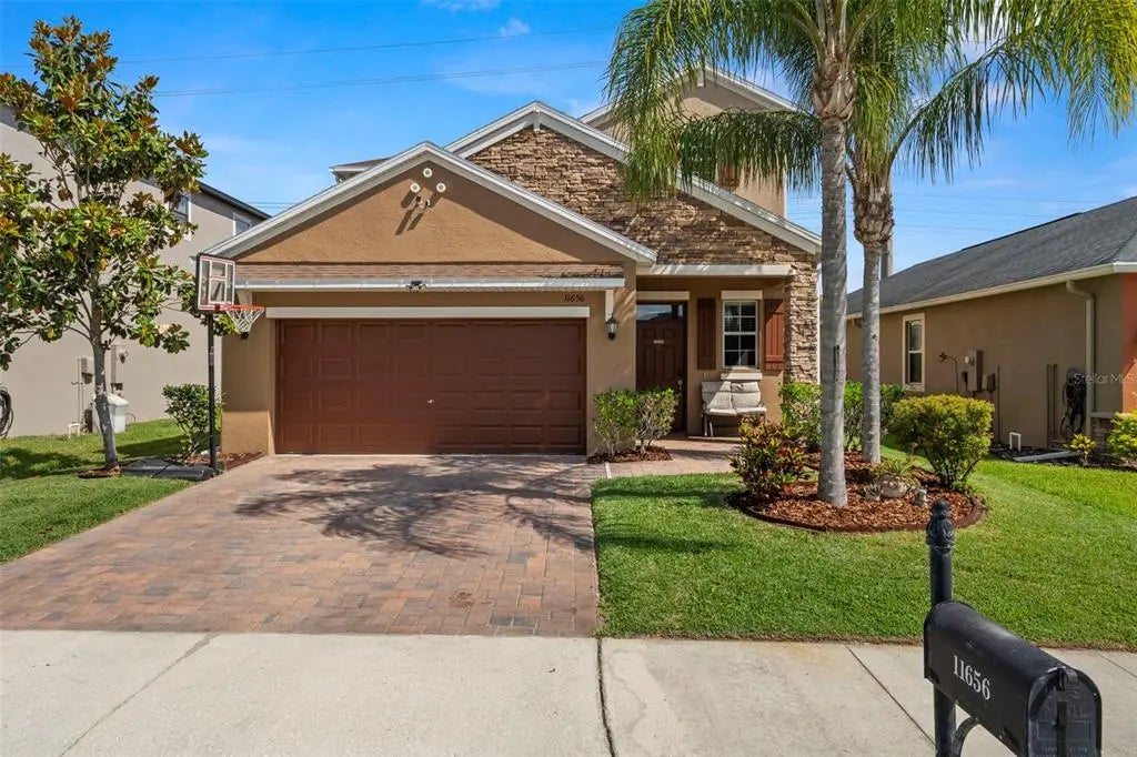 One or more photo(s) has been virtually staged. Priced WELL below recent comps !! Pre-purchased wind mitigation and 4-point report completed for buyers peace of mind. Looking for a home with NO CDD fees AND in a NON-FLOOD Zone? Look no further. Located in the serene community of Trinity Lakes, this spacious 5 bed, 3.5 bath home features a 2 car garage and an open floor plan. With 2,500 sq/ft of living space, this home will not disappoint. The kitchen is adorned with solid wood cabinets, granite counter and stainless steel appliances. The primary bedroom, featuring a walk-in closet and dual sink en-suite bath, is located on the first floor. Upstairs you will find four additional bedrooms and two full baths. But that's not all, there is also a huge loft on the second floor great for game nights or just gathering with friends. The back screened-in patio has been extended out to give you more outdoor covered space. NEW A/C 2024. New Exterior Paint 2024. Don't miss out on this opportunity, it won't last long. Photos have been virtually staged.