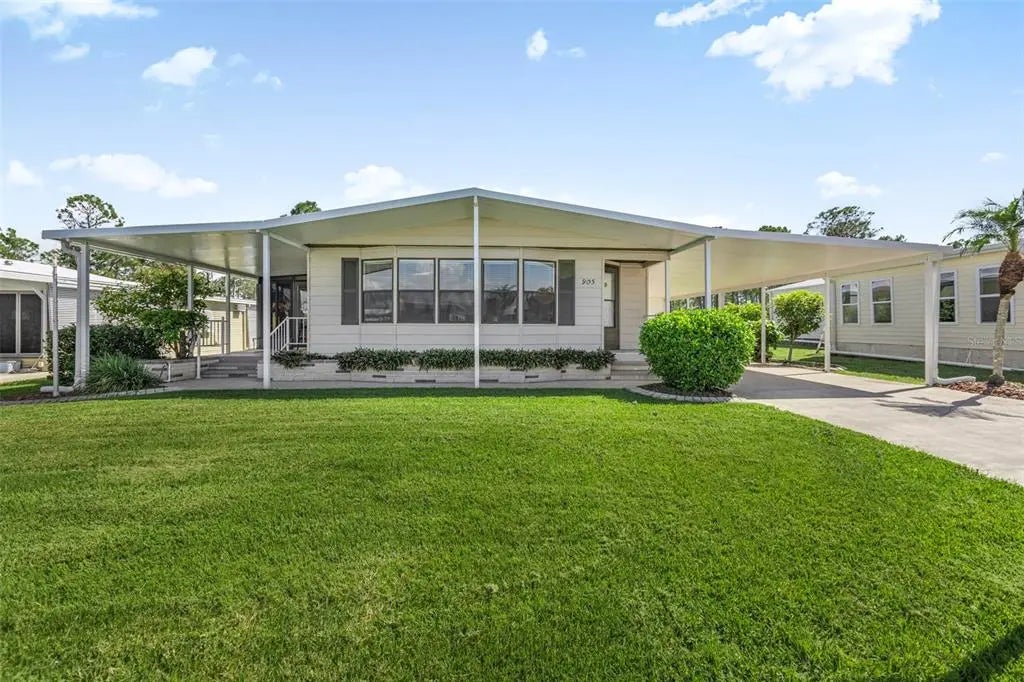 Experience the peace and tranquility of the Myakka Forest from the backyard of this charming two-bedroom, two-bath home located in our pet-friendly area. The entryway includes a desk and pantry for added convenience. The spacious open kitchen features a center island, pantry, utility closet, modern appliances and newer cabinets. The adjacent family room has sliding doors that lead to a carpeted, glass-enclosed Florida room, equipped with roll-down shades. The Florida room offers access to both the front porch and a rear covered patio area, providing beautiful views o the Myakka Forest. The dining room includes a built-in hutch, perfect for displaying crystal, fine china and collectibles. The living room features a coat closet and a door leading to the front porch. he primary bedroom boasts a double coset and direct access to an en suite bathroom, which includes newer cabinets, a double-sink vanity and a spacious walk-in closet and a walk-in tiled shower. The bathroom also features a wall of linen and storage cabinets. The guest bedroom has a corner closet, while the adjacent guest bath includes a newer vanity and a tub/shower combination. The home is equipped with plenty of storage throughout. Additional features include a new A/C in 2024, a humidistat and ceiling fans. The roof, carport and gutters were replaced in 2023. The long carport leads to the utility room which contains extra storage, a deep sink, washer, dryer and storage. The owner is offering a $10,000.00 flooring allowance. This lovely home has numerous upgrades making it a great find!
