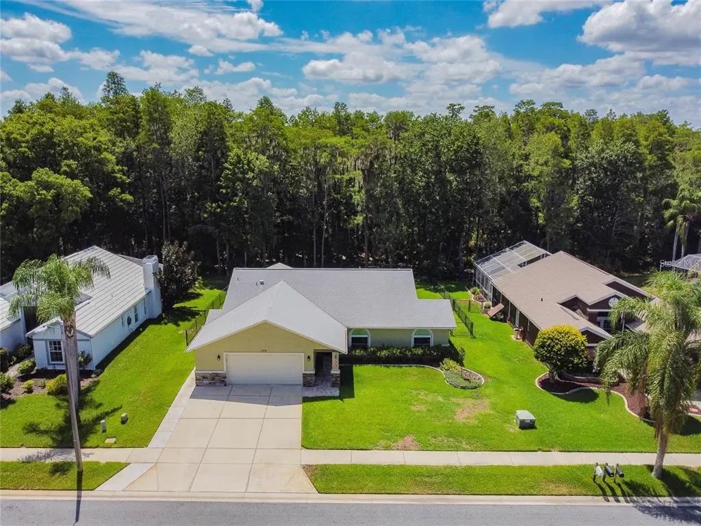 Spacious and beautifully updated 3-bedroom home with a dedicated office, perfectly situated on a conservation lot with private wooded views. The large fenced yard is ideal for outdoor living and entertaining. Inside, soaring cathedral ceilings highlight the open main living area. The home offers low-maintenance style with no carpet—flooring throughout is either wood laminate or tile. The updated kitchen features granite countertops, stainless steel appliances, and plenty of storage. Generously sized bedrooms and tastefully updated baths provide comfort and convenience. Located in a desirable neighborhood bordering Odessa, this home offers quick access to the Suncoast Parkway via SR-54, making commuting a breeze. Enjoy nearby amenities including Starkey Park, and all the dining, shops, and entertainment of downtown New Port Richey. Top rated schools you can verify for your satisfaction. Move-in ready and waiting for you!