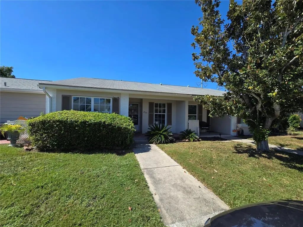 Available for move in in Early October. Very charming 2-bedroom, 1-bath villa in Veterans Villas. Light and bright villa features a nice floor plan, with 888 square feet of living space (not including small enclosed Porch), solar lighting, living room/dining room combo, A newer kitchen with Granite countertops, inside utility with stackable washer and dryer, walk-in closet for lots of storage space, and an enclosed back porch. Newer roof, newer flooring, newer windows, and newer energy-efficient air conditioning system. Great location! Very nice!